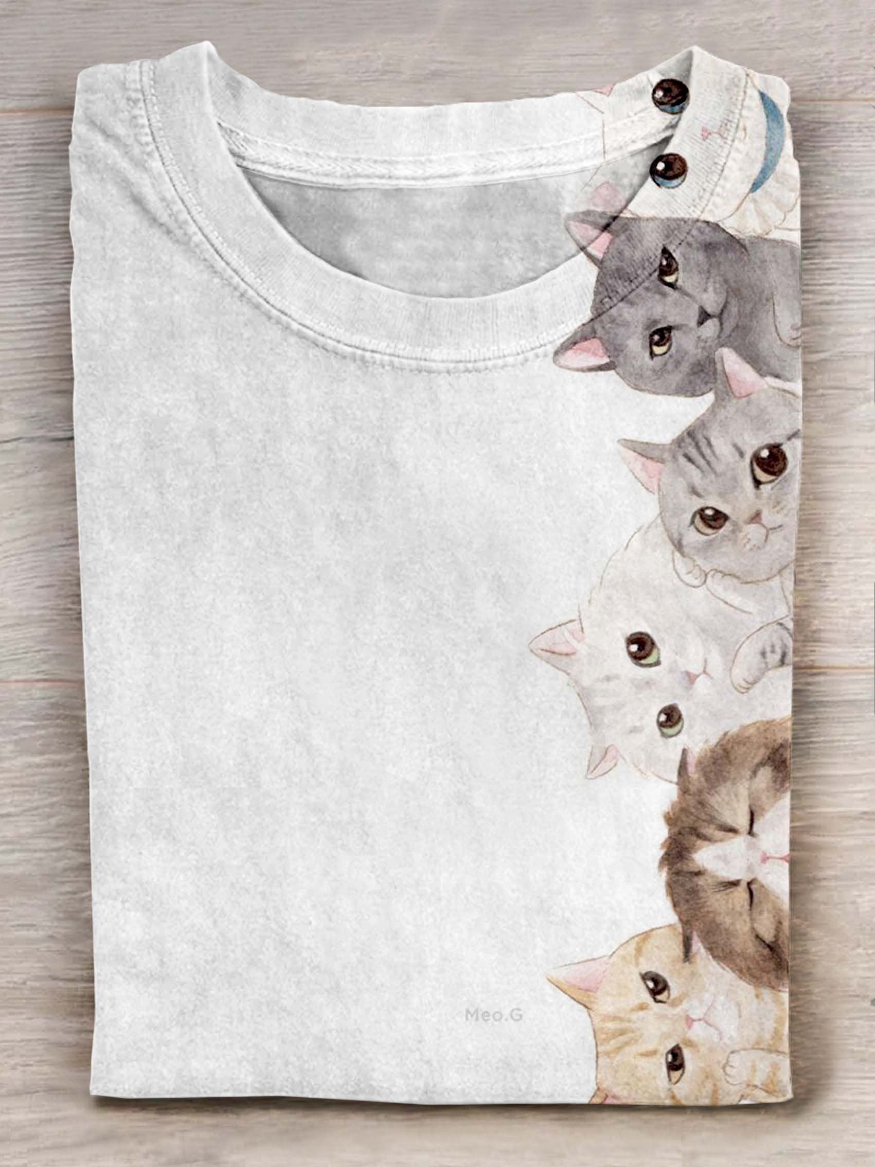 Cat Art Print Casaul Short Sleeve T-shirt