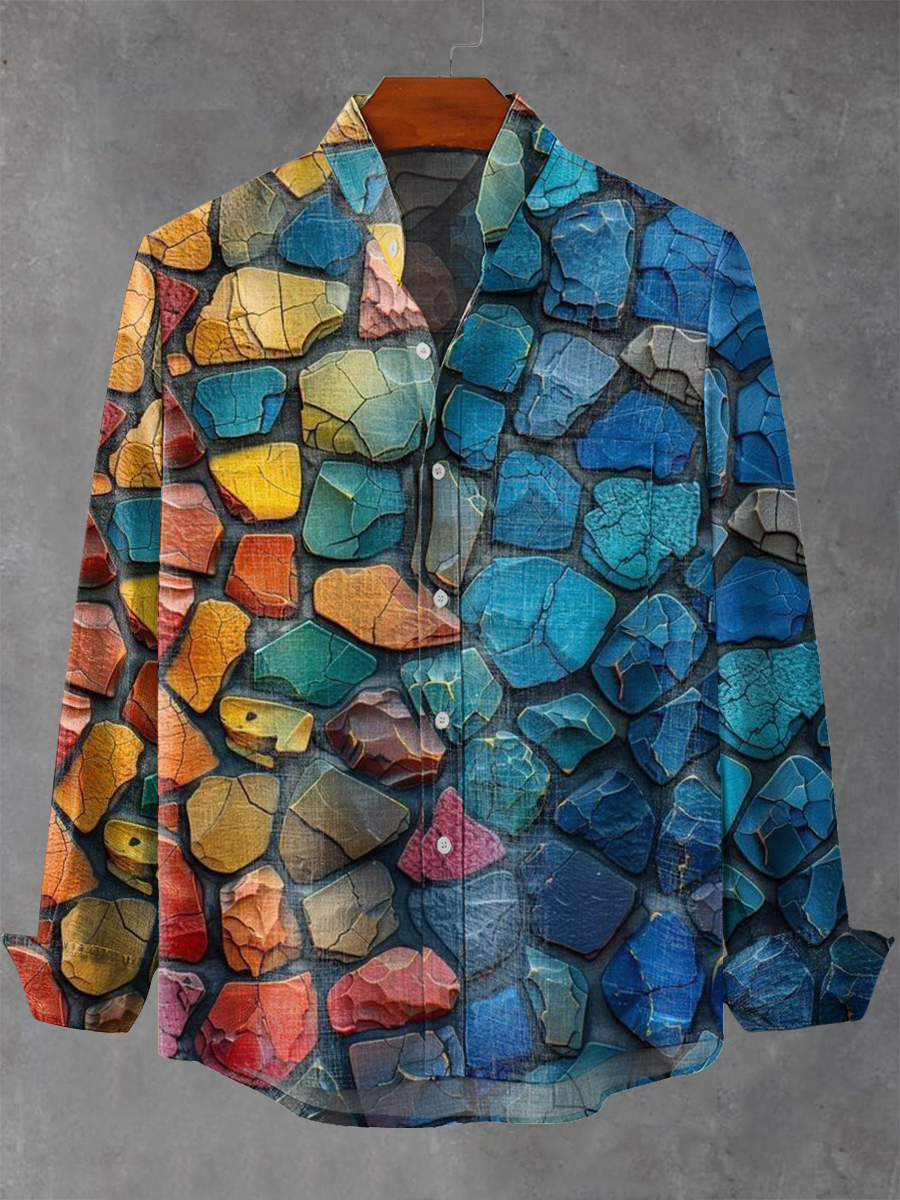 Decorative Pattern of Dried Colored Pigment Blocks 100% Cotton Long Sleeve Shirt