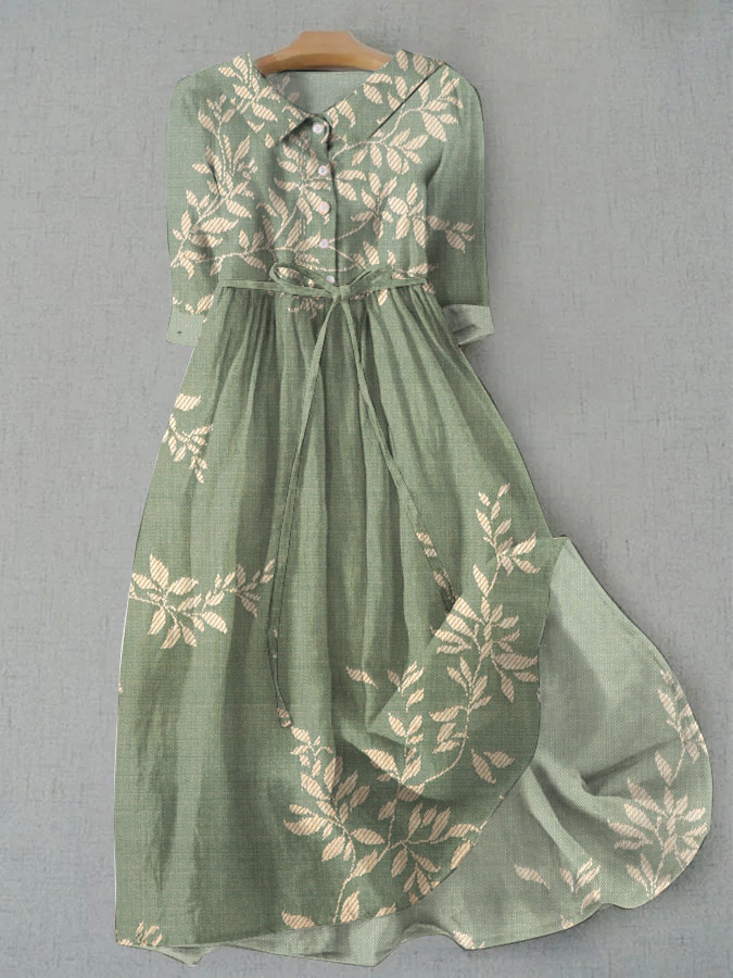 Japanese Plant Print Art Print Casual Tie Dress