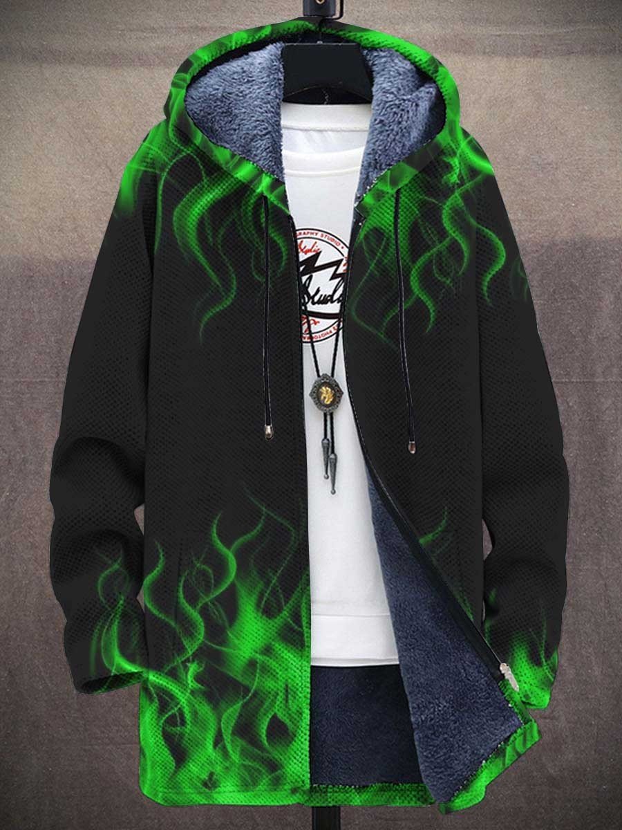 Men's Flame Art Print Plush Thick Long-Sleeved Sweater Coat Cardigan