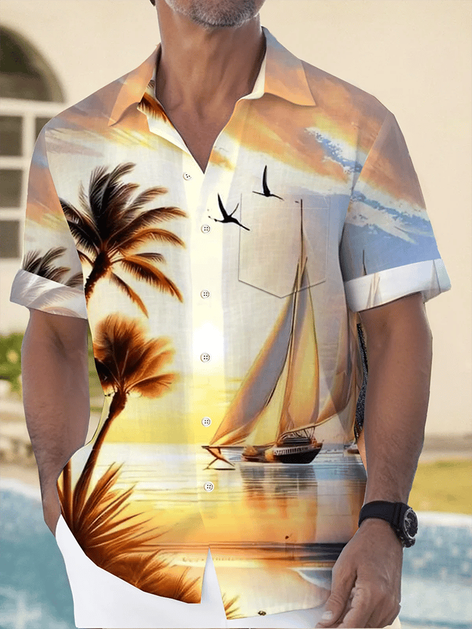 Men's Hawaiian Print Resort Casual Shirt (With Pockets)