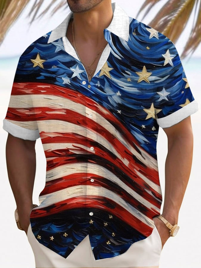 Men's Vintage Flag Print Casual Shirt