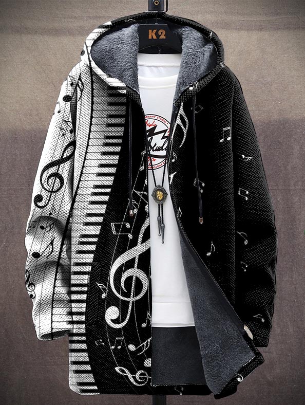 Unisex Art Piano Music Black and White Contrast Printed Warm Plush Long Sleeve Jacket Cardigan