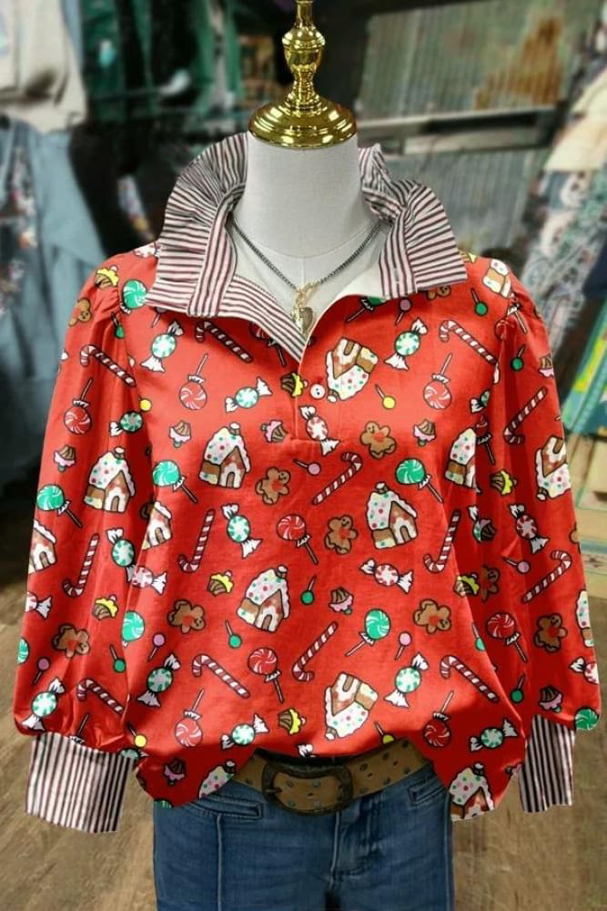 Women's Retro Christmas Print Casual Long Sleeve Comfortable Top